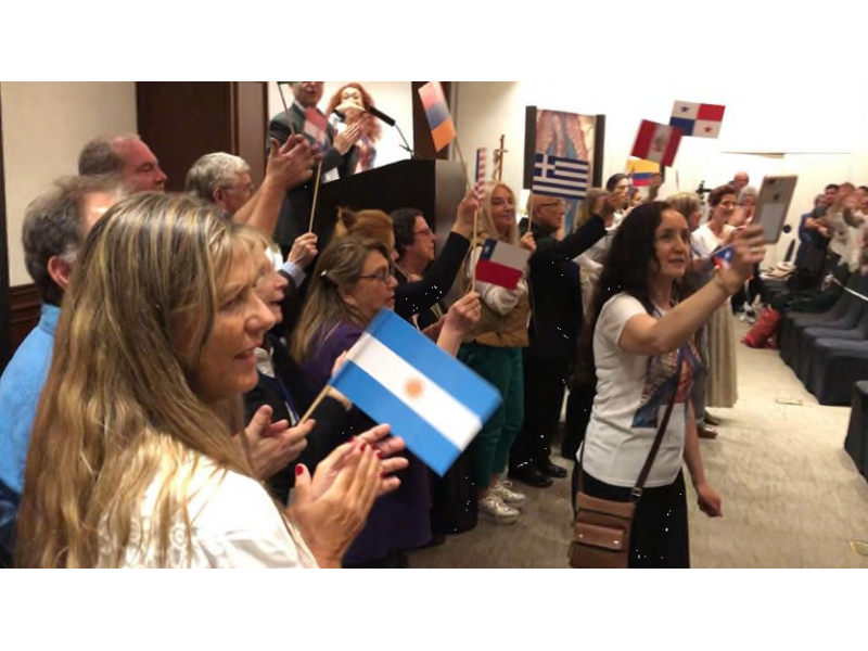 Javni skup počeo je s Oče naš na aramejskom jeziku, Isusovu jeziku. Ta uzvišena pjesma stvorila je molitveno ozračje za pozorno slušanje Vassulinog govora o porukama našega Gospodina.