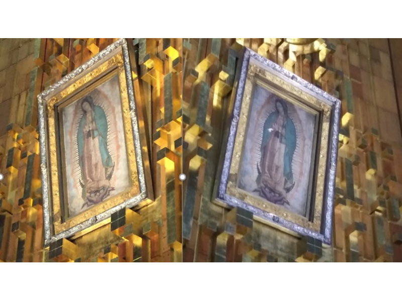 Te večeri jedna gospođa iz SAD prišla nam je i pokazala čudesnu sliku Gospe Guadalupske. Dok je bila ispred svete slika naše Gospe, a što je originalno platno (tilma) na kojem je nebeska slika bila utisnuta s Neba, načinila je nekoliko fotografija. Na putu u hotel gledala je svoje fotografije i najednom ugledala da se na jednoj od njih pojavila Gospa s golubom koji leti iz njezinih ruku … Jasno, Duh Sveti!!!