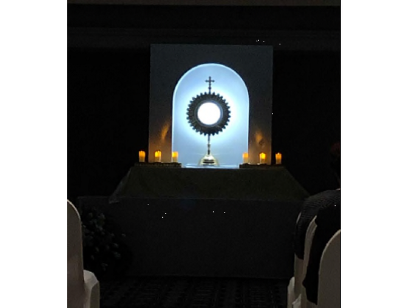 Nakon mise biskup Oliver prenio je Presveti Oltarski sakrament u posebnu dvoranu, preuređenu u kapelu za noćnu adoraciju tijekom cijele duhovne obnove.