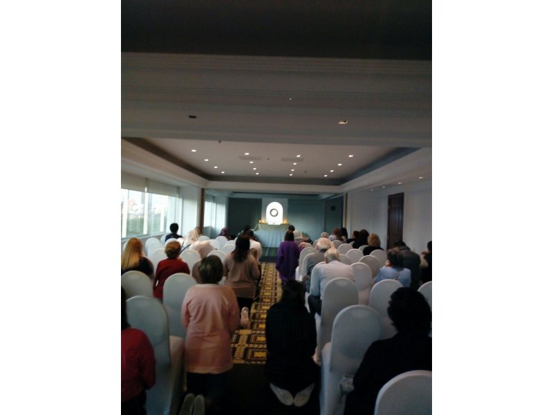Svi su sudionici došli u dvoranu gdje se održavao javni skup. Tu je u 10 h slavljena sveta misa, a poslije toga ljudi su pjevali pohvalne pjesme.